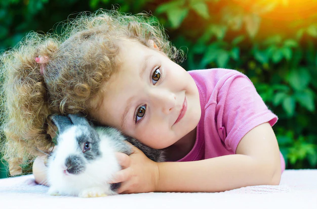 Hier ist das kleine Kaninchen, das vom Nachbarshund gejagt wurde."